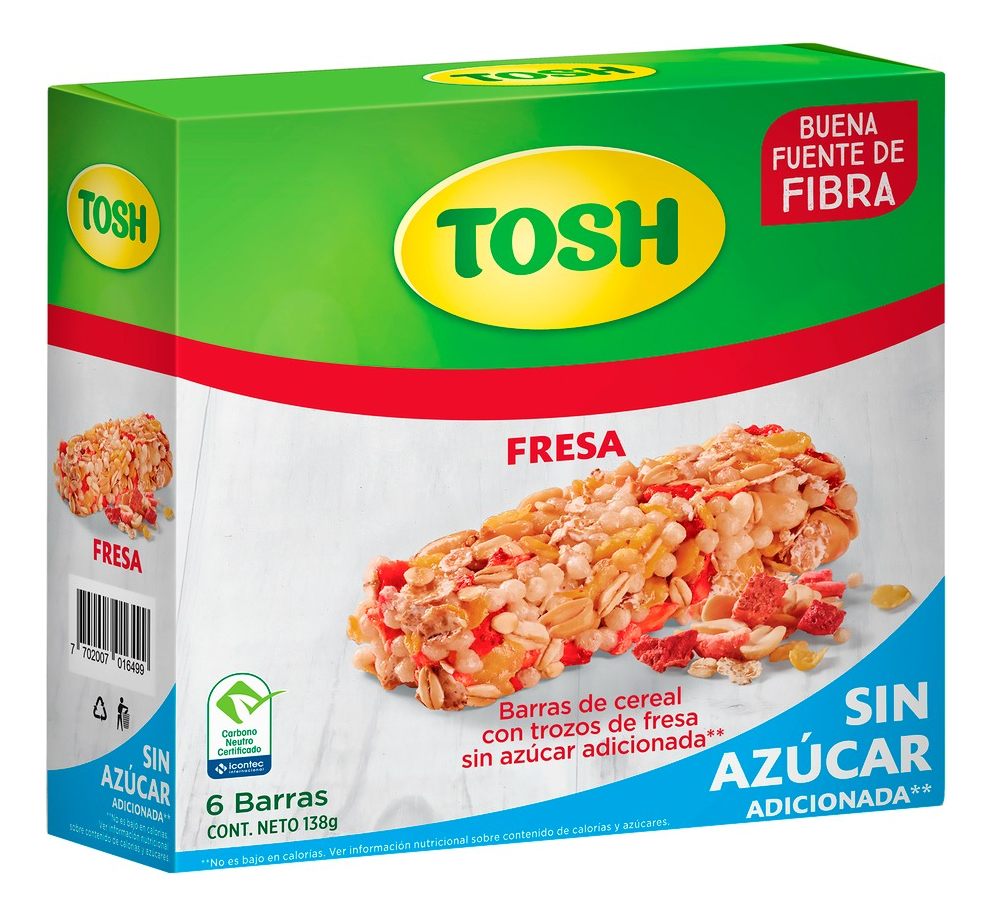 Barra Cereal Tosh Fresa Sin Azucar 23g 6 Unidades