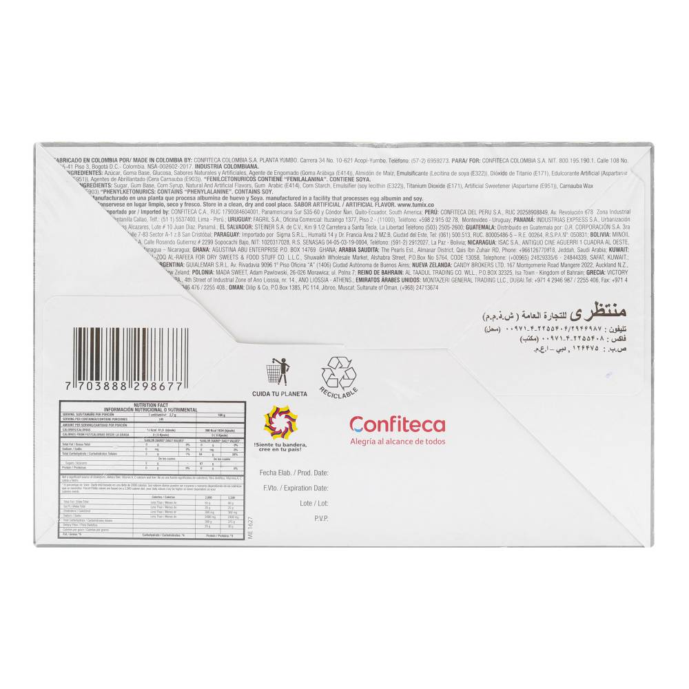 Con un peso total de 300 g y dimensiones compactas, estos chicles son ideales para compartir con amigos o disfrutar en solitario. La línea Tumix se destaca por su calidad y sabor, brindando una experiencia refrescante que perdura en el tiempo.
