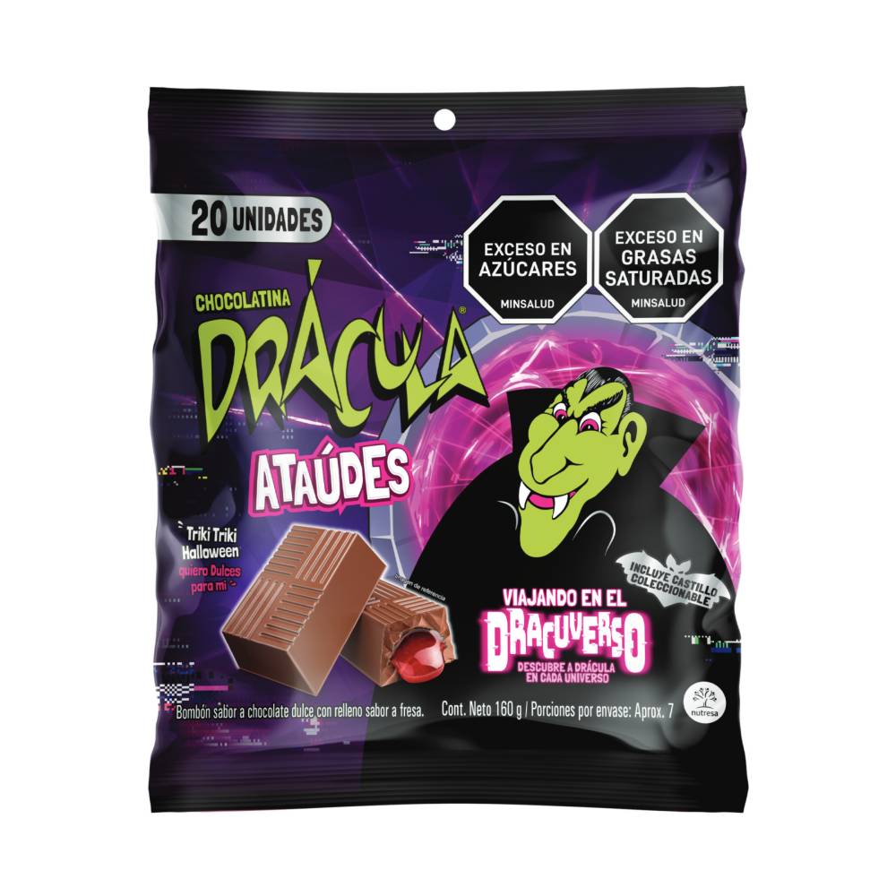 La Chocolatina Dracula Ataúdes es una deliciosa opción para los amantes del chocolate que buscan un sabor único y envolvente. Presentada en un práctico paquete de 160 g que contiene 20 unidades, es ideal para compartir en reuniones, fiestas o simplemente disfrutar en cualquier momento del día. Su diseño atractivo y divertido la convierte en un producto perfecto para los más pequeños, así como para aquellos que desean revivir la nostalgia de su infancia.