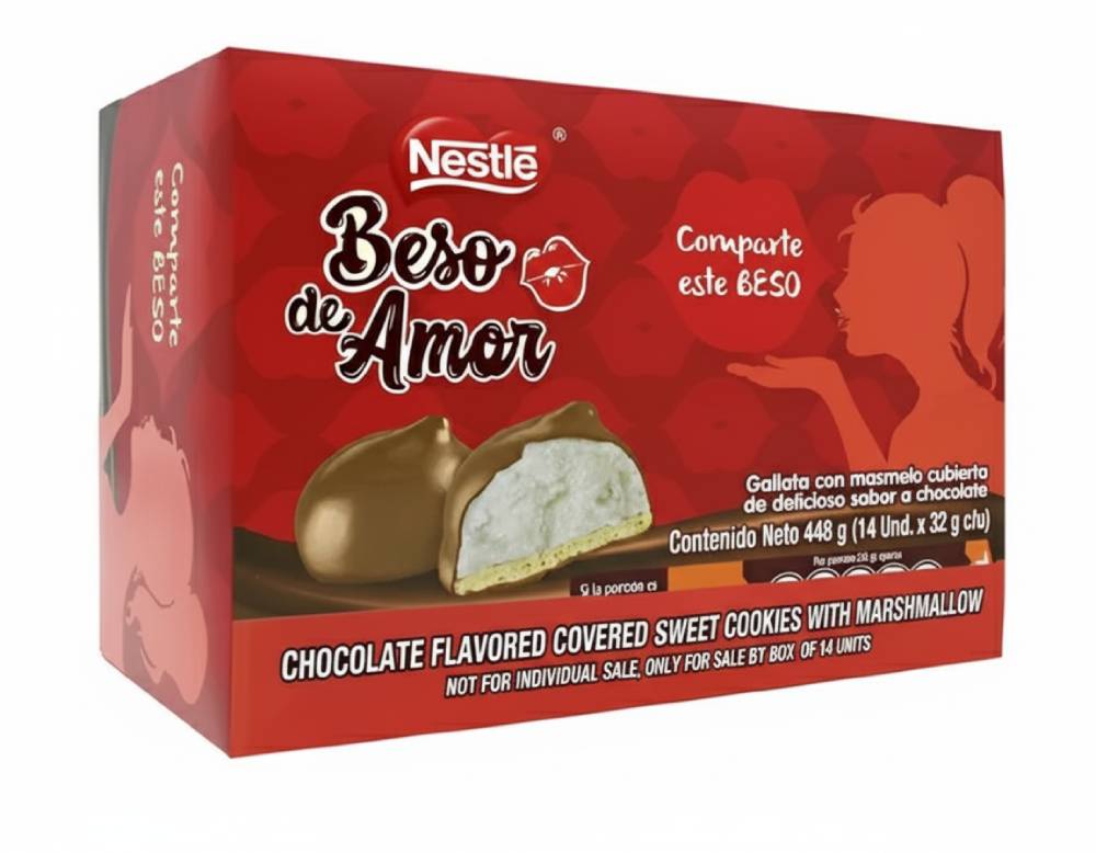 Descubre el placer de disfrutar las Galletas Beso de Amor de Nestlé, un deleite que combina la suavidad de su textura con un sabor irresistible. Cada paquete contiene 14 unidades, perfectas para compartir en momentos especiales o para disfrutar en solitario. Su presentación en un display atractivo facilita su exhibición y almacenamiento, convirtiéndolas en una opción ideal para cualquier ocasión.