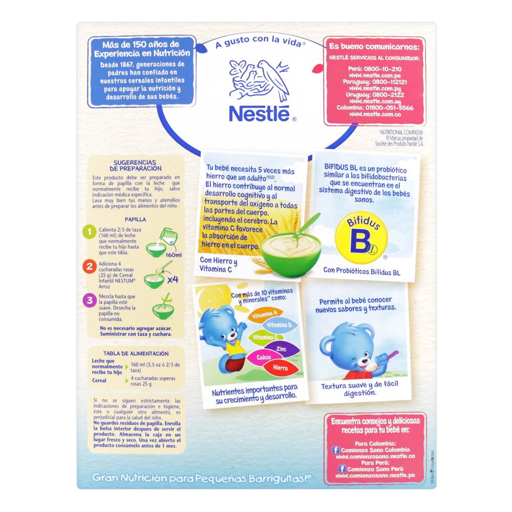 ¡NUTRICIÓN SUAVE Y FÁCIL DE DIGERIR PARA TU BEBÉ! NESTUM BL ARROZ ES UN CEREAL INFANTIL A BASE DE ARROZ, IDEAL PARA BEBÉS CON ESTÓMAGOS SENSIBLES O INTOLERANCIAS ALIMENTARIAS. SU TEXTURA SUAVE Y SU SABOR NEUTRO LO HACEN FÁCIL DE DIGERIR Y LO CONVIERTEN EN UNA EXCELENTE OPCIÓN PARA INICIAR LA ALIMENTACIÓN COMPLEMENTARIA. ¡CUIDA LA PANCITA DE TU BEBÉ CON NESTUM! IDEAL PARA BEBÉS A PARTIR DE 6 MESES. ¡DISFRUTA DE LA TRANQUILIDAD DE SABER QUE TU BEBÉ ESTÁ BIEN ALIMENTADO! PREPARA CON LECHE MATERNA O DE FÓRMULA, SIGUIENDO LAS INDICACIONES DEL ENVASE.