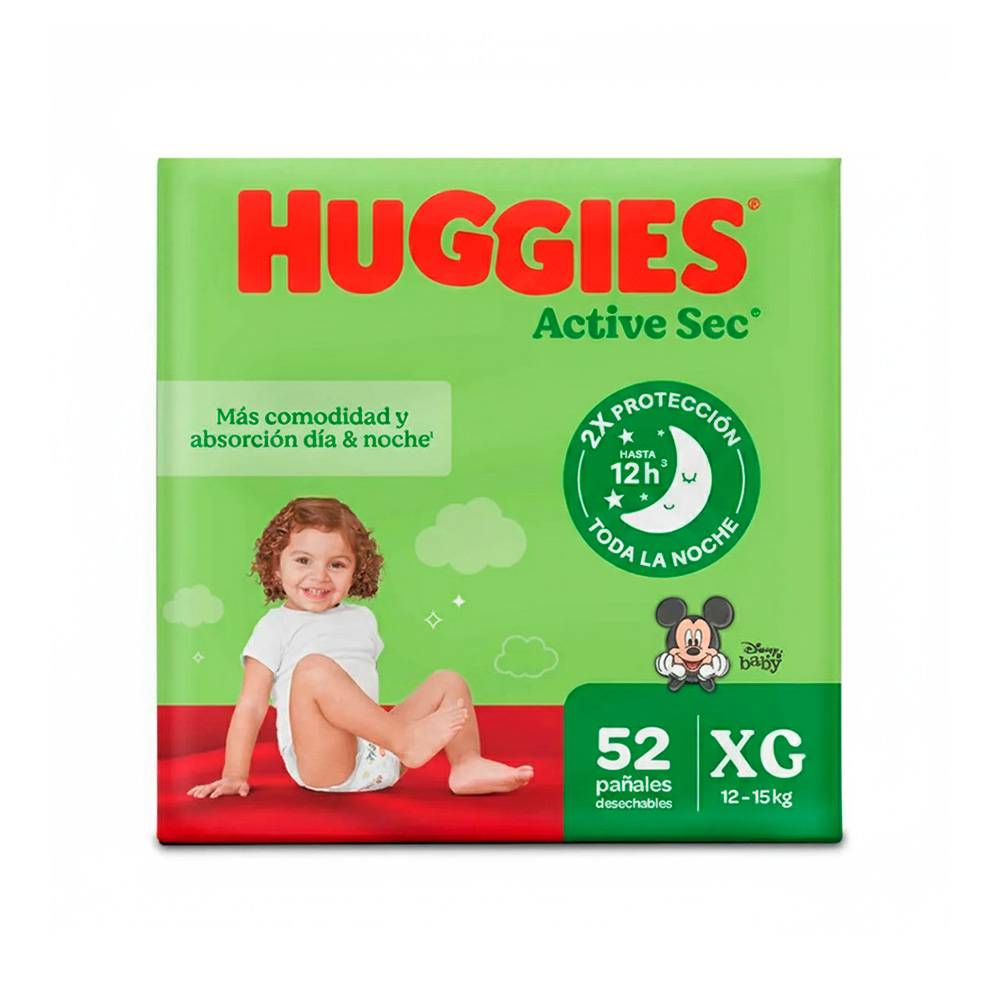 Pañales Huggies Active Sec Etapa 4 Xg 52 Unidades