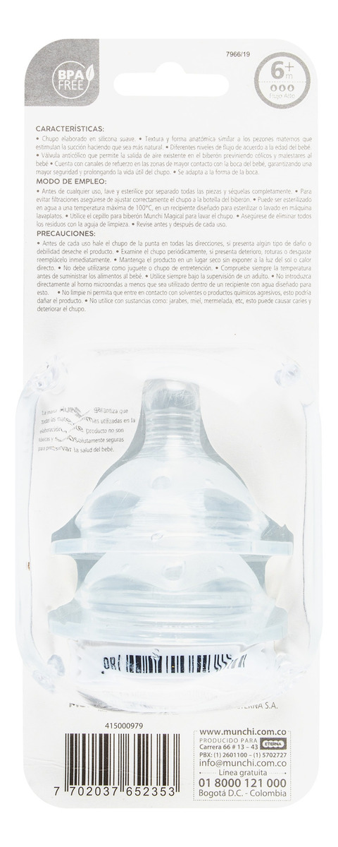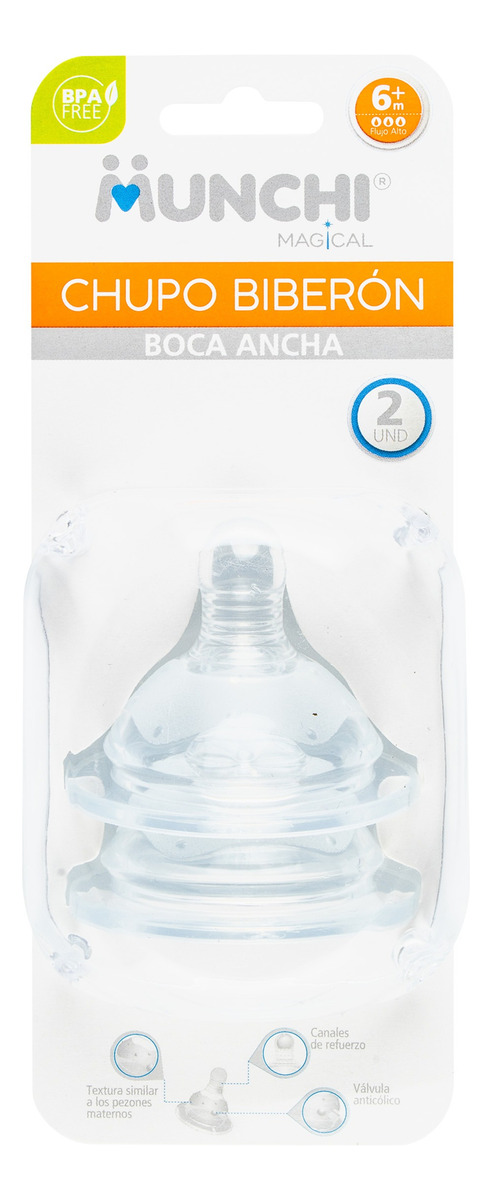 Chupo Munchi Boca Ancha 6 Meses 2 Unidades