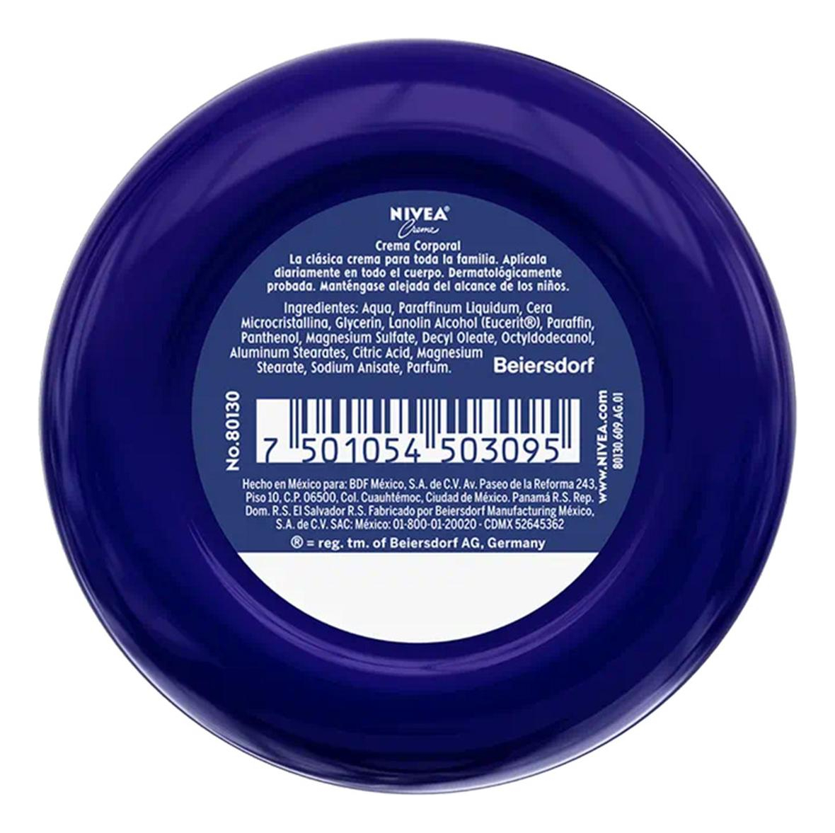 Gracias a sus propiedades hidratantes y humectantes, esta crema Nivea deja tu piel profundamente nutrida y protegida contra la sequedad. Su efecto de cuidado intenso te brinda una sensación de suavidad y elasticidad duradera.