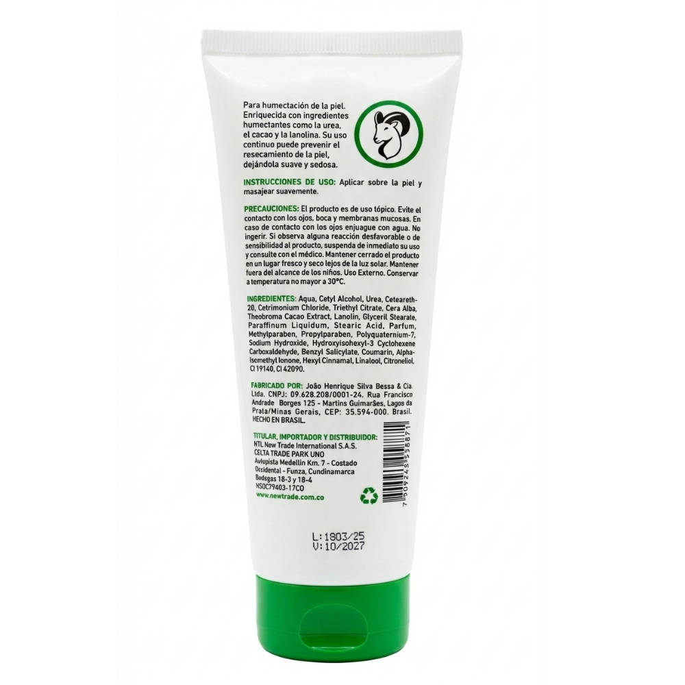 Diseñada para una hidratación profunda de la piel, especialmente manos pies y codos. Enriquecida con alta concentración de agentes hidratantes como: Urea y Cacao que evita la resequedad y deja la piel suave y sedosa por mas tiempo.