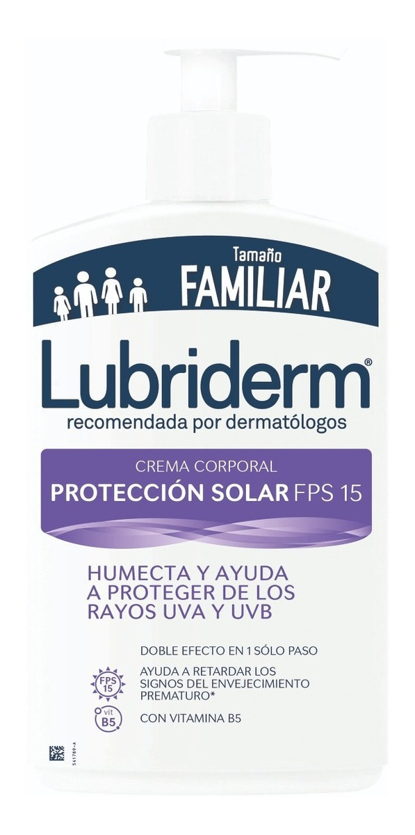 Al comprar éste producto usted recibe: UNA CREMA LUBRIDERM UV-15 PROTECCIÓN SOLAR TAMAÑO FAMILIAR CON VALVULA 750 ml, adquirida directamente a laboratorio J&J
