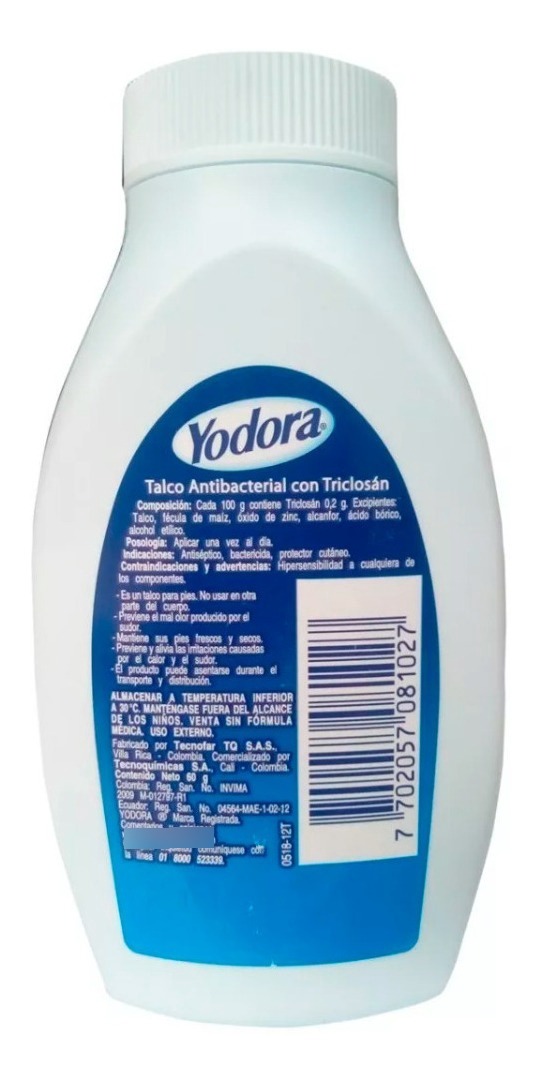 Recibes TALCO YODORA 60 GR, Registro Sanitario: 2009 M-012797-R1 + ENVIO A TODA COLOMBIA.