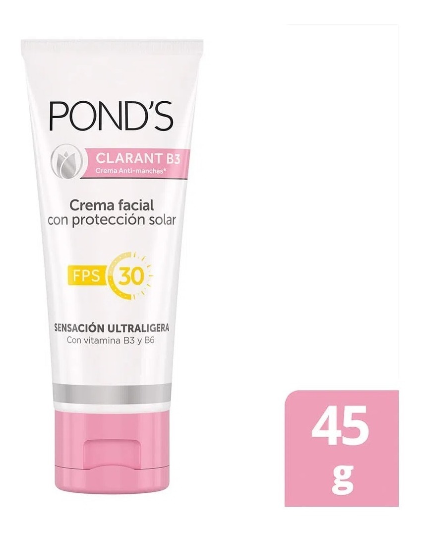 RecibesCrema Facial Ponds Clarant B Con Protector Solar Fps 30 45 Gr, Registro Sanitario Invima: NSOC94355-19CO.