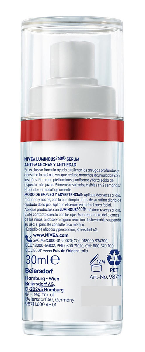 Recibes NIVEA LUMINOUS SERUM ANTIEDAD 30 ML