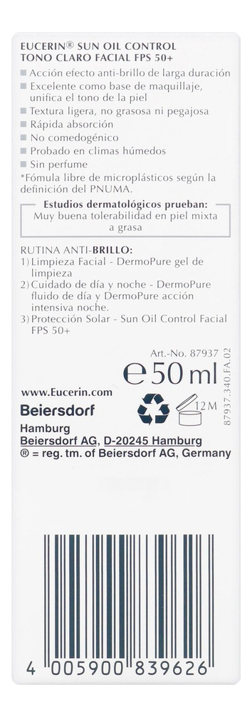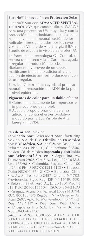 Protector Solar Eucerin Oil Control Tinted Tono Claro