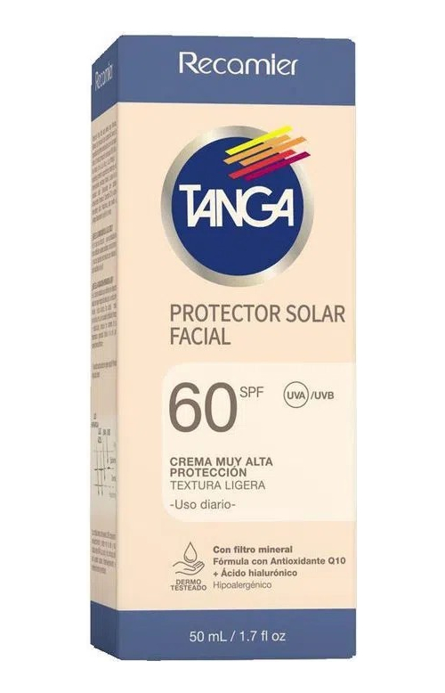 Recibes PROTECTOR SOLAR FACIAL TANGA CREMA SPF60 50ml, Registro sanitario: NSOC16785-22CO + DESPACHO INMEDIATO