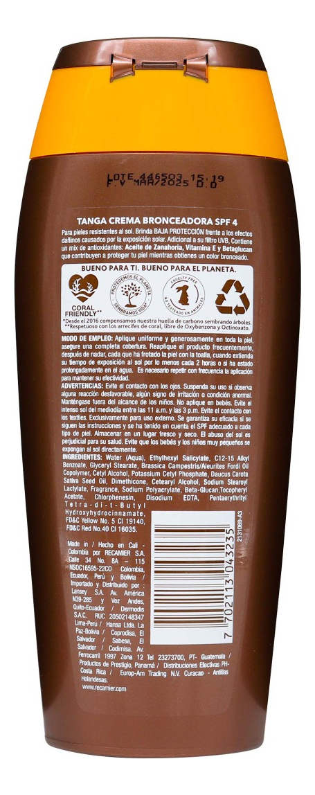 Crema Bronceadora Tanga Zanahoria Y Vitamina E Spf 4 220 Ml