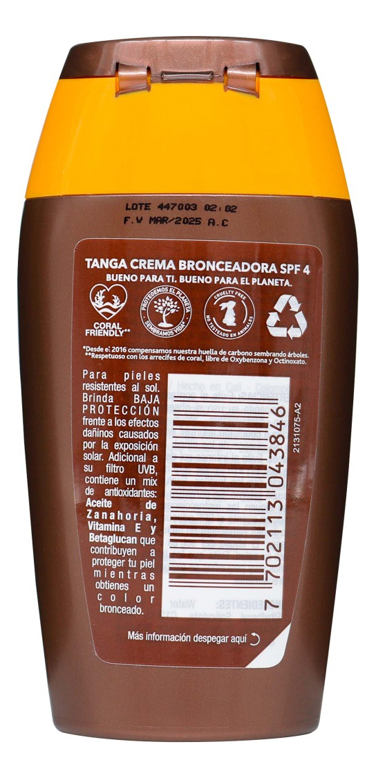 Crema Bronceadora Tanga Zanahoria Y Vitamina E Spf 4 85 Ml