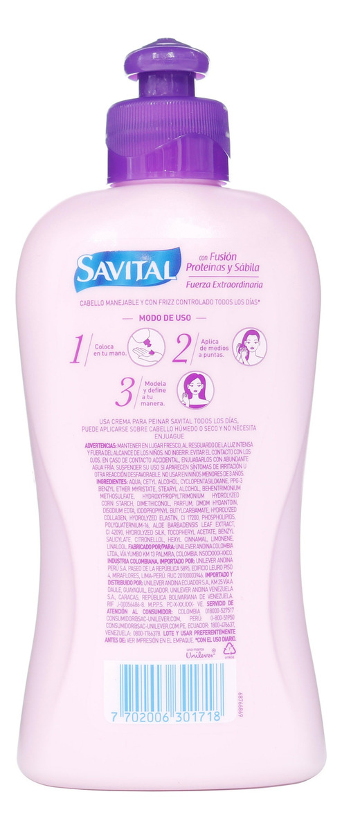 Crema Para Peinar Savital Fusión De Proteínas Sábila 275 Ml