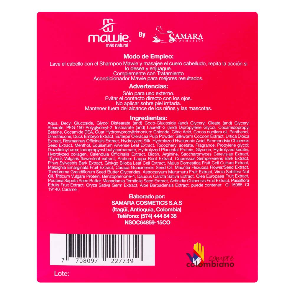 Disfruta de una limpieza suave que no solo purifica tu cabello, sino que también lo nutre desde la raíz hasta las puntas. Con el Shampoo Mawie, transformar la salud de tu cabello nunca fue tan fácil y accesible.