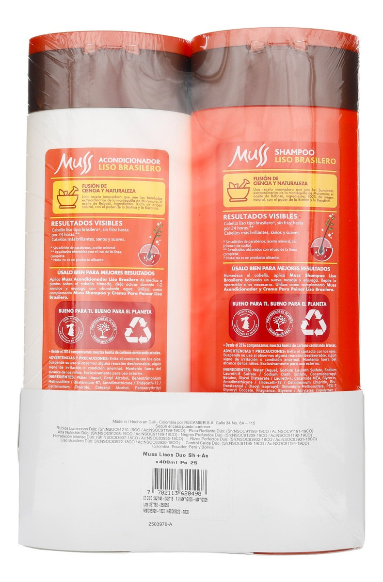 Shampoo Muss Liso Brasilero Sin Sal + Acondicionador