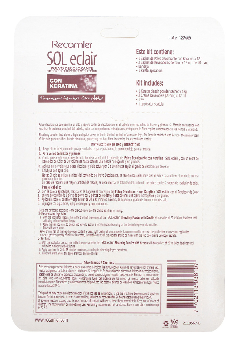 Recibes KIT SOLECLAIR POLVO DECOLORANTE ARGAN OIL 12 GR