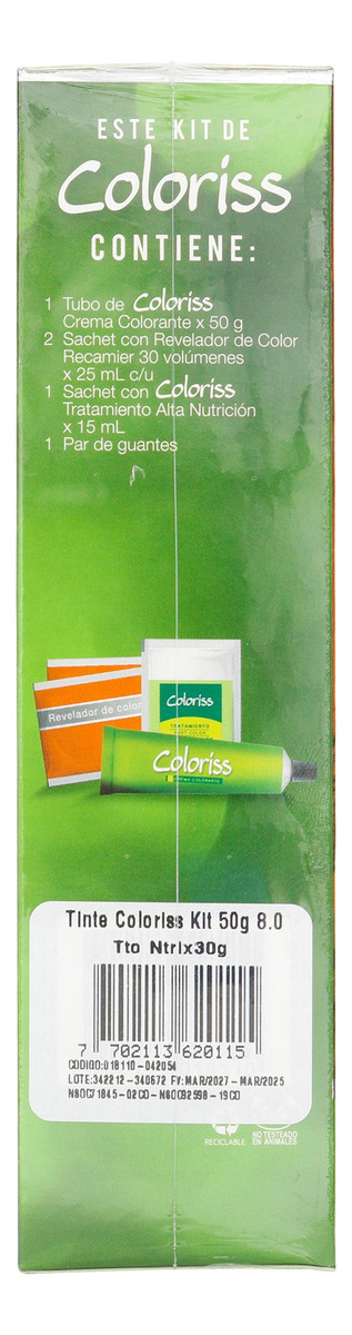 Recibes TINTE COLORIS KIT 8.0 RUBIO CLARO + TRATAMIENTO