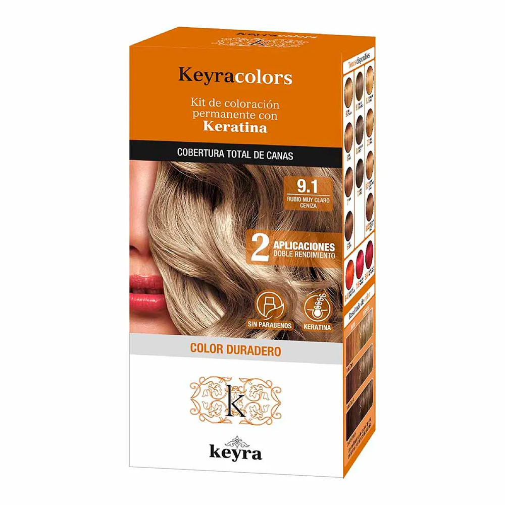 Tinte Keyra Kit 9.1 Rubio Muy Claro Ceniza