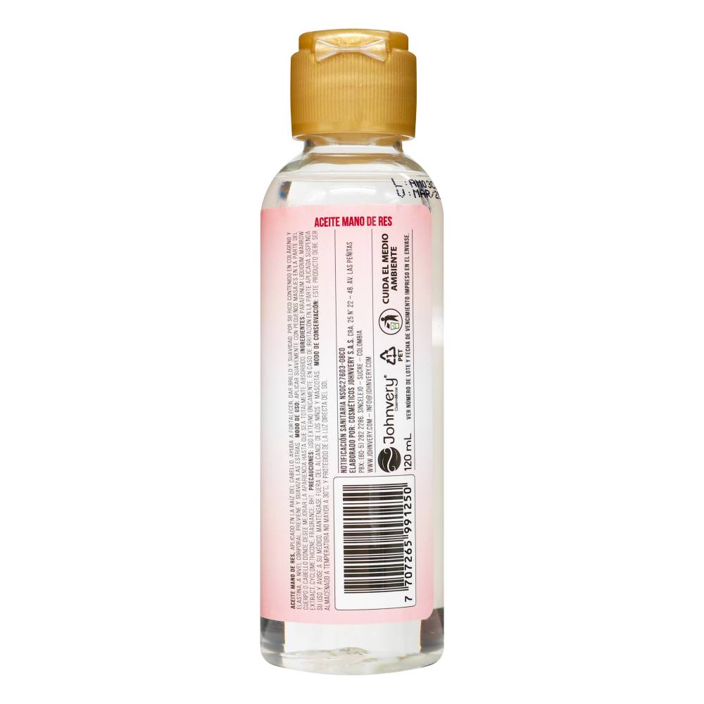 Recibes ACEITE DE MANO DE RES TRATAMIENTO CAPILAR 120 ML JOHNVERY