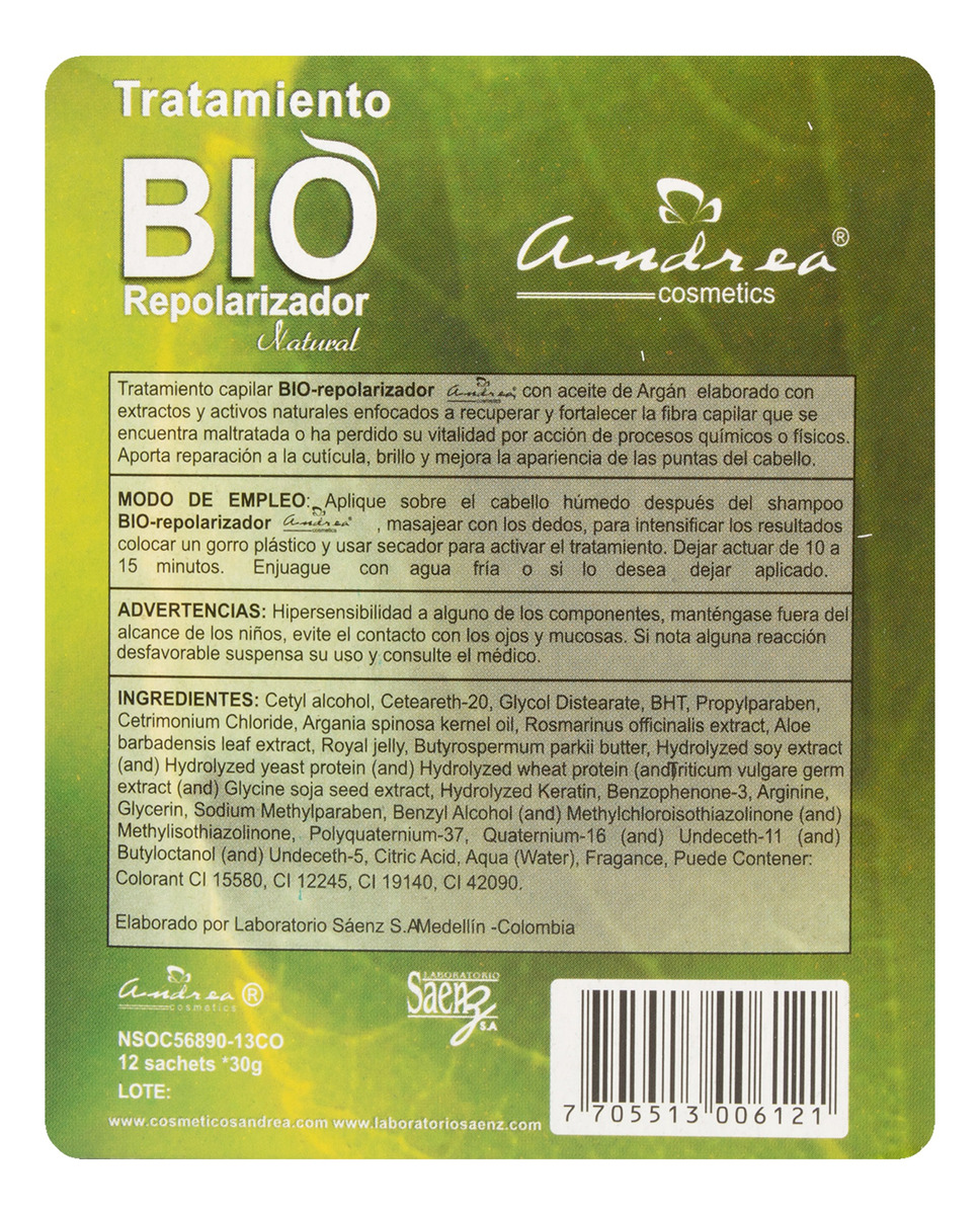 Recibes TRATAMIENTO ANDREA BIO REPOLARIZADOR 12 SOBRES
