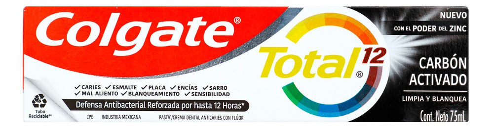 Crema Dental Colgate Total 12 Carbon Activado 75 Ml