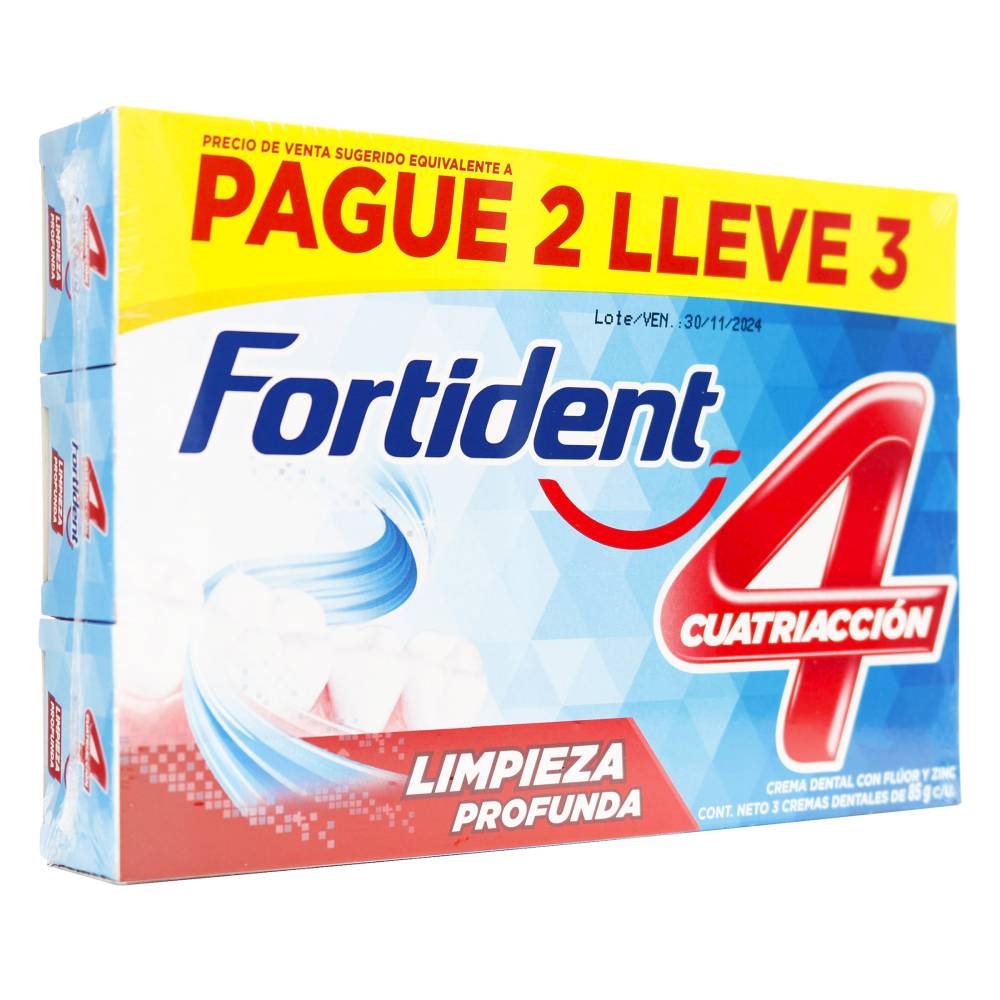 RECIBES CREMA DENTAL FORTIDENT LIMPIEZA PROFUNDA 85 G 3 UNIDADES