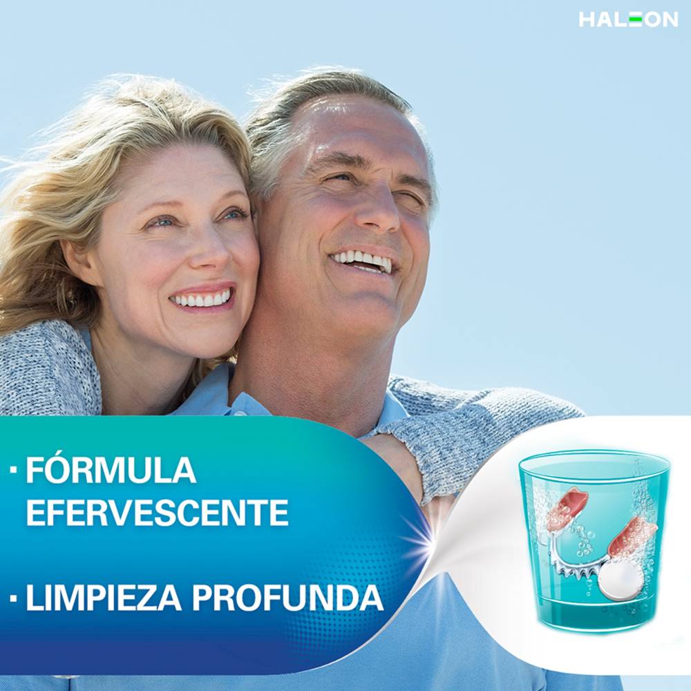 Mantén tu prótesis dental impecable con Corega Tabs. Sus tabletas efervescentes de Haleon eliminan el 99.9% de las bacterias que causan el mal olor en solo 3 minutos, proporcionando una limpieza profunda y una triple frescura de menta sin dañar el material de tu prótesis.