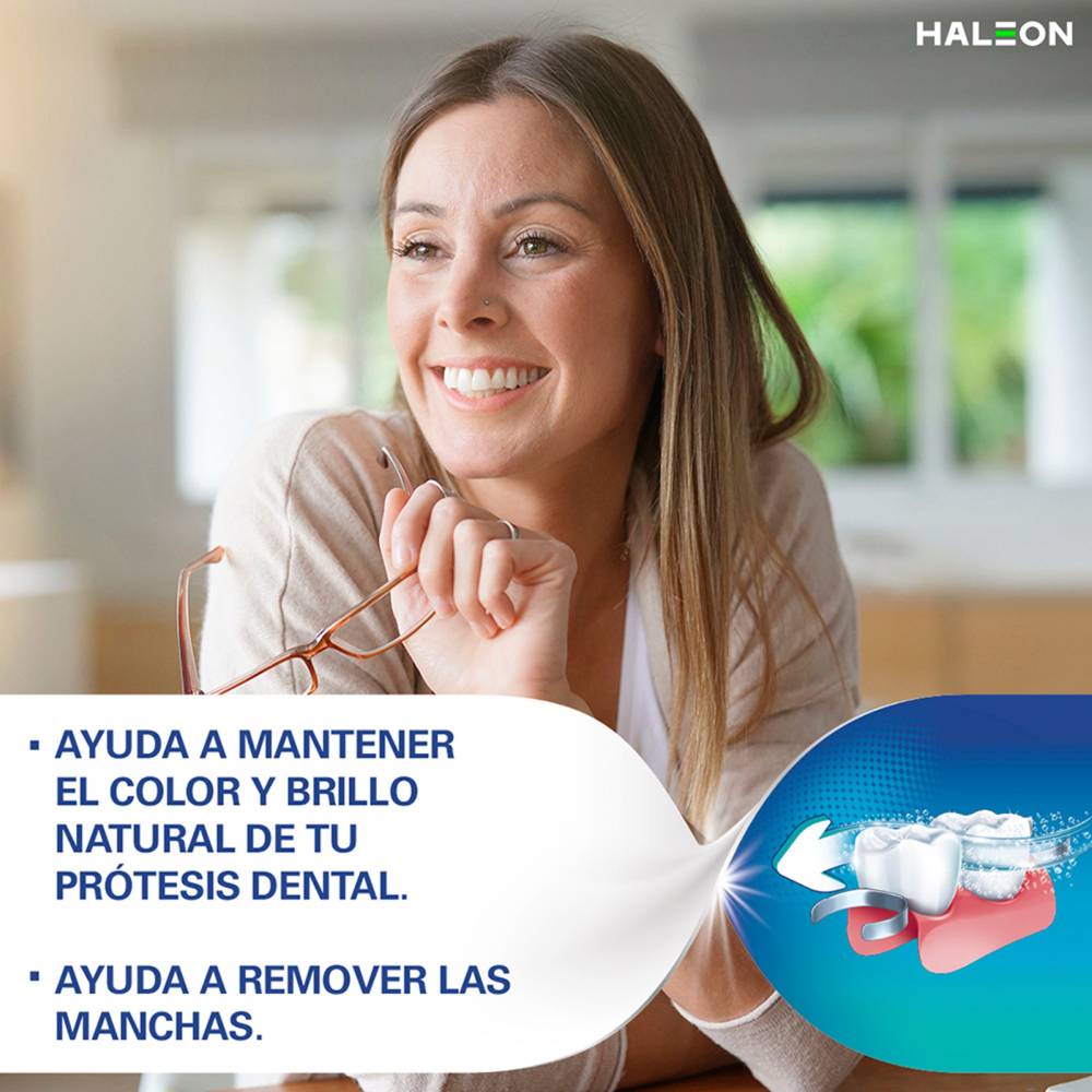 Cuidado Estético: Ayuda a remover manchas difíciles y a mantener el color y brillo natural de tu prótesis dental.