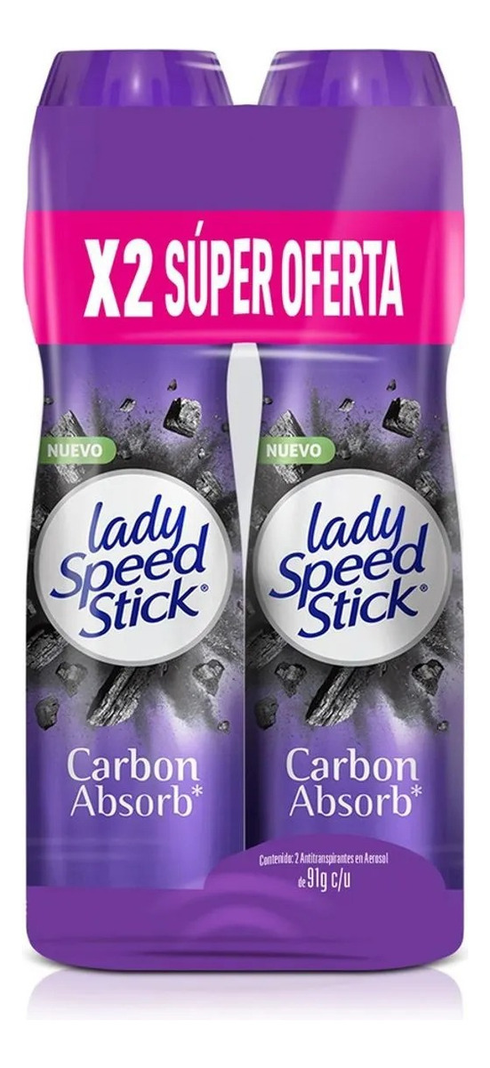2 Desodorantes Lady Speed Stick Carbon Absorb 91g C/u