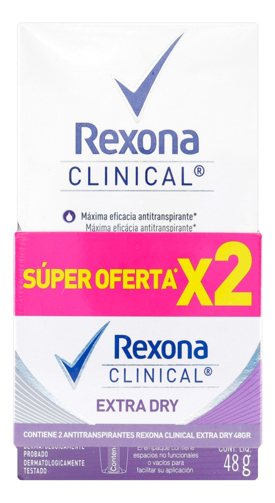 2 Desodorantes Rexona Clinical Extra Dry Mujer 48 Gr C/u