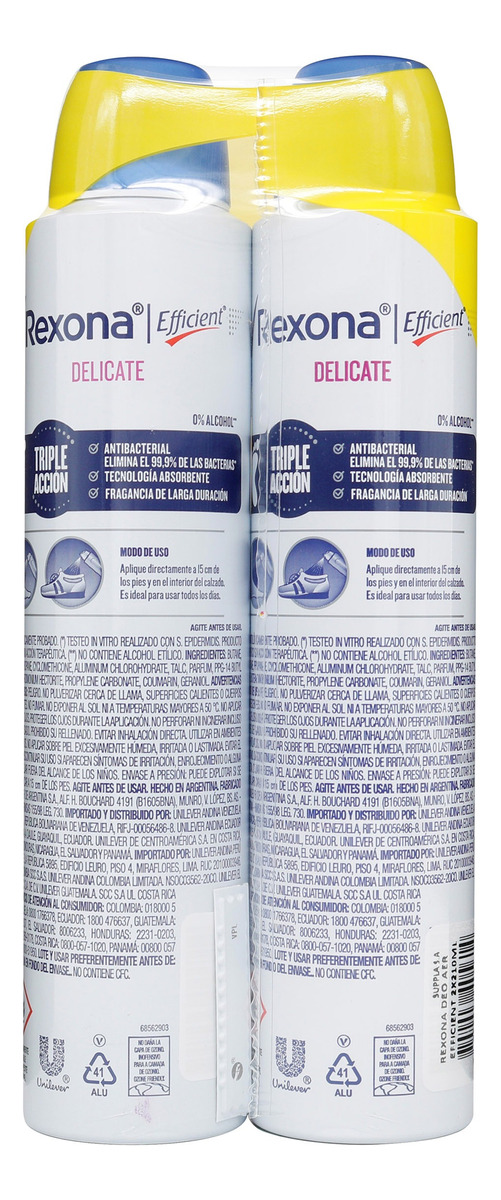 2 Desodorantes Rexona Efficient Delicate 210 Ml