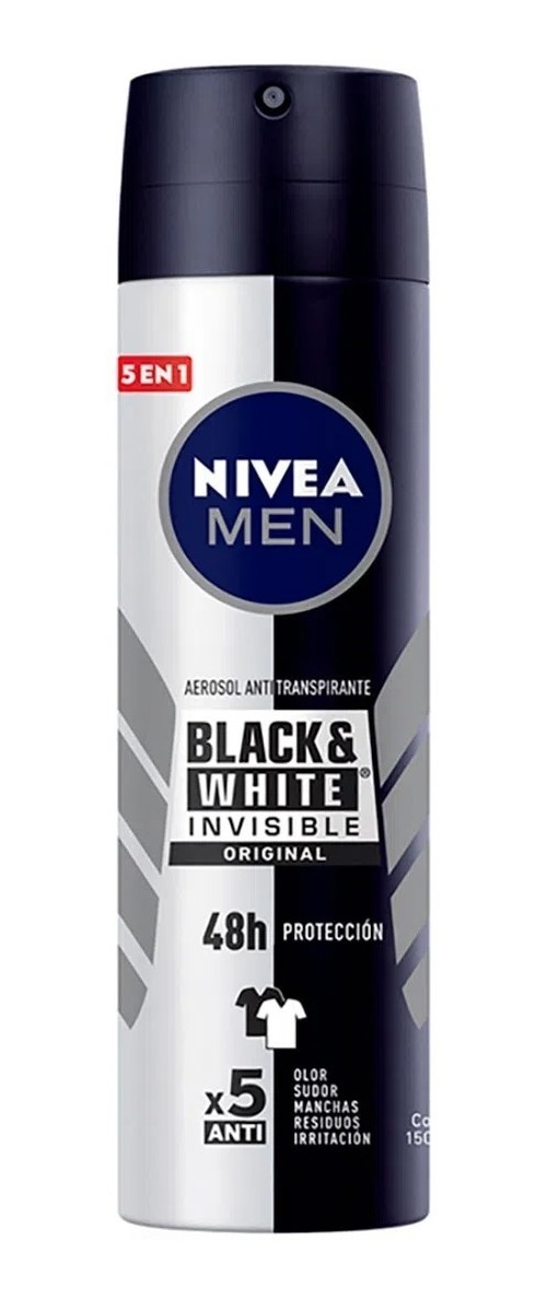 Recibes Desodorante Nivea Men Spray Black White x 150 mL Registro Sanitario: NSOC52773-13CO + DESPACHO INMEDIATO