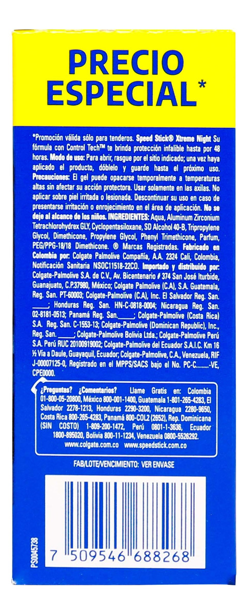 Recibes DESODORANTE SPEED STICK MEN XTREME NIGHT GEL 18 SOBRES