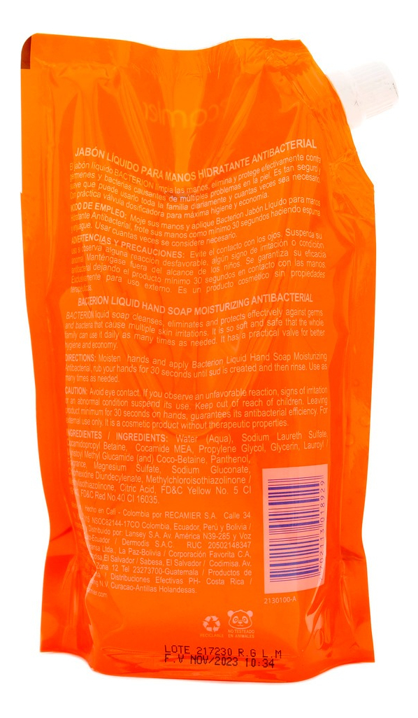 Jabón Liquido Bacterion Hidratante Antibacterial 500 Ml