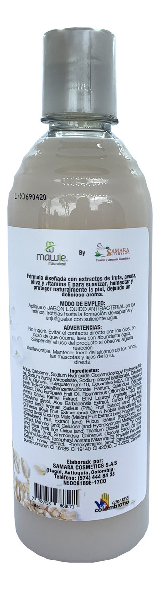 Jabón Líquido Mawie Antibacterial Avena 500 Ml