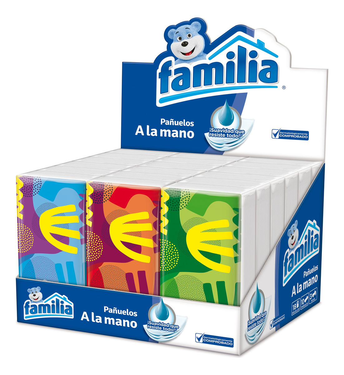 Recibes PAÑUELOS FAMILIA TRIPLE HOJA BANDEJA 18 UNIDADES