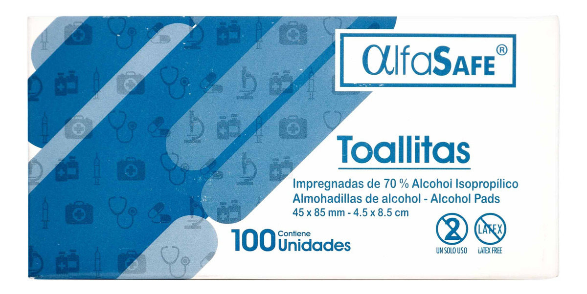 Recibes TOALLITAS ALCOHOL ISOPROPILICO ALFASAFE 100 UNIDADES