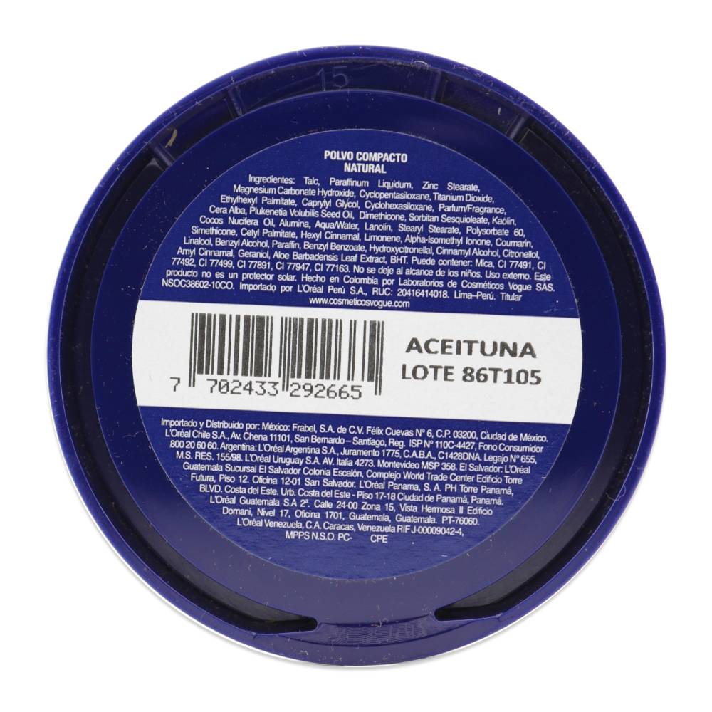 La base clave para un acabado impecable es el Polvo Compacto Vogue Aceituna. Esta fórmula de alta calidad aporta un toque de sofisticación gracias a su textura sedosa que se desliza suavemente sobre la piel, ofreciendo una cobertura uniforme. Es ideal para quienes buscan una opción práctica y efectiva que se adapte a su tonalidad natural, proporcionando un acabado mate y duradero.