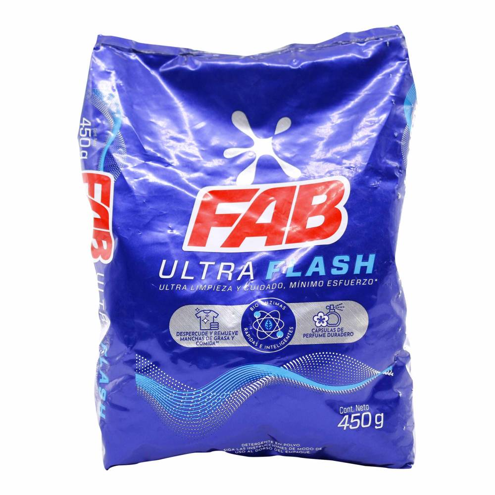 Descubre la eficacia del Detergente En Polvo Fab Ultra Flash 450 G, diseñado para ofrecer una limpieza profunda y un cuidado excepcional de tus prendas. Su fórmula avanzada elimina manchas difíciles y proporciona frescura duradera, dejando la ropa impecable y con un aroma agradable.