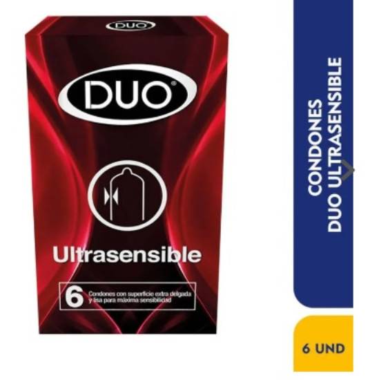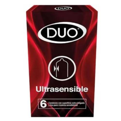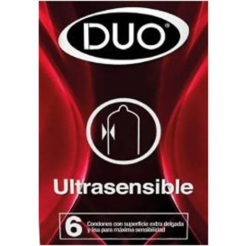 ¡SIENTE CADA DETALLE! PRESERVATIVOS DUO ULTRASENSIBLE DISEÑADOS PARA MAXIMIZAR LA SENSIBILIDAD Y EL PLACER. SU LÁTEX EXTRAFINO TE PERMITE SENTIR CADA DETALLE COMO SI NO LLEVARAS NADA. ¡MÁXIMA SENSIBILIDAD, MÁXIMA PROTECCIÓN! FABRICADOS CON LÁTEX DE ALTA CALIDAD Y PROBADOS ELECTRÓNICAMENTE PARA GARANTIZAR LA MÁXIMA SEGURIDAD. ¡VIVE LA INTIMIDAD CON LA MÁXIMA NATURALIDAD! PAQUETE DE 6 UNIDADES, IDEAL PARA PAREJAS QUE BUSCAN LA MÁXIMA SENSIBILIDAD.
