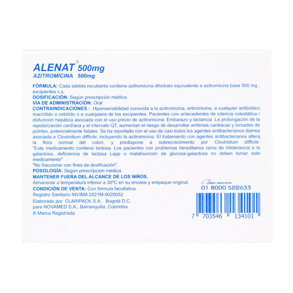 Alenat Azitromicina 500 mg 3 Tabletas