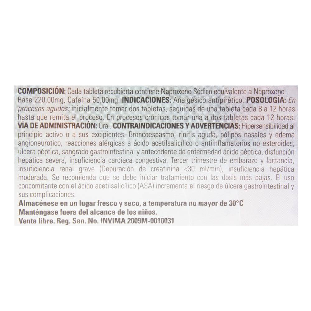 Alivio rápido y efectivo para dolores severos: nuestras tabletas de Dolumbar combinan naproxeno sódico y cafeína para aliviar dolores severos de cabeza, migraña, reumatismo y menstruales. La cafeína potencia el efecto analgésico del naproxeno, ideal para situaciones donde necesitas un alivio inmediato.