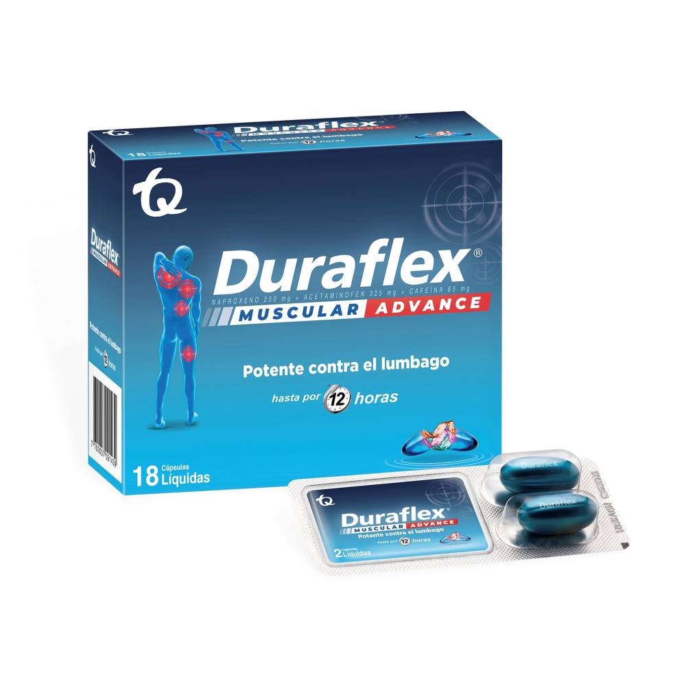 Alivio económico y prolongado para dolores severos: nuestro paquete de 18 cápsulas de Duraflex Advance es perfecto para familias o para aquellos que buscan un alivio confiable y económico para dolores severos. Con una combinación efectiva de acetaminofén, naproxeno sódico y cafeína, es ideal para tratar dolores musculares, articulares y menstruales, ofreciendo un alivio seguro y efectivo.