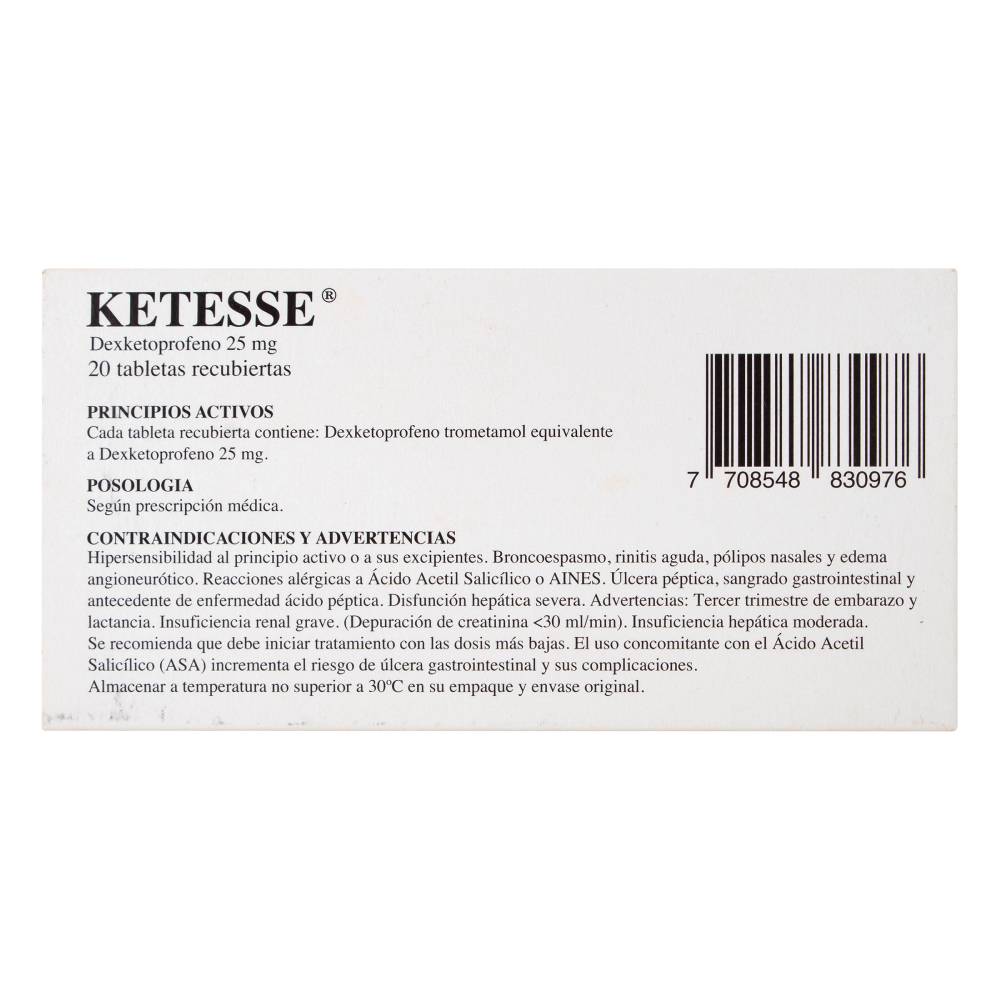 Ketoprofeno Tabletas Ketesse 25 Mg 20 Tabletas