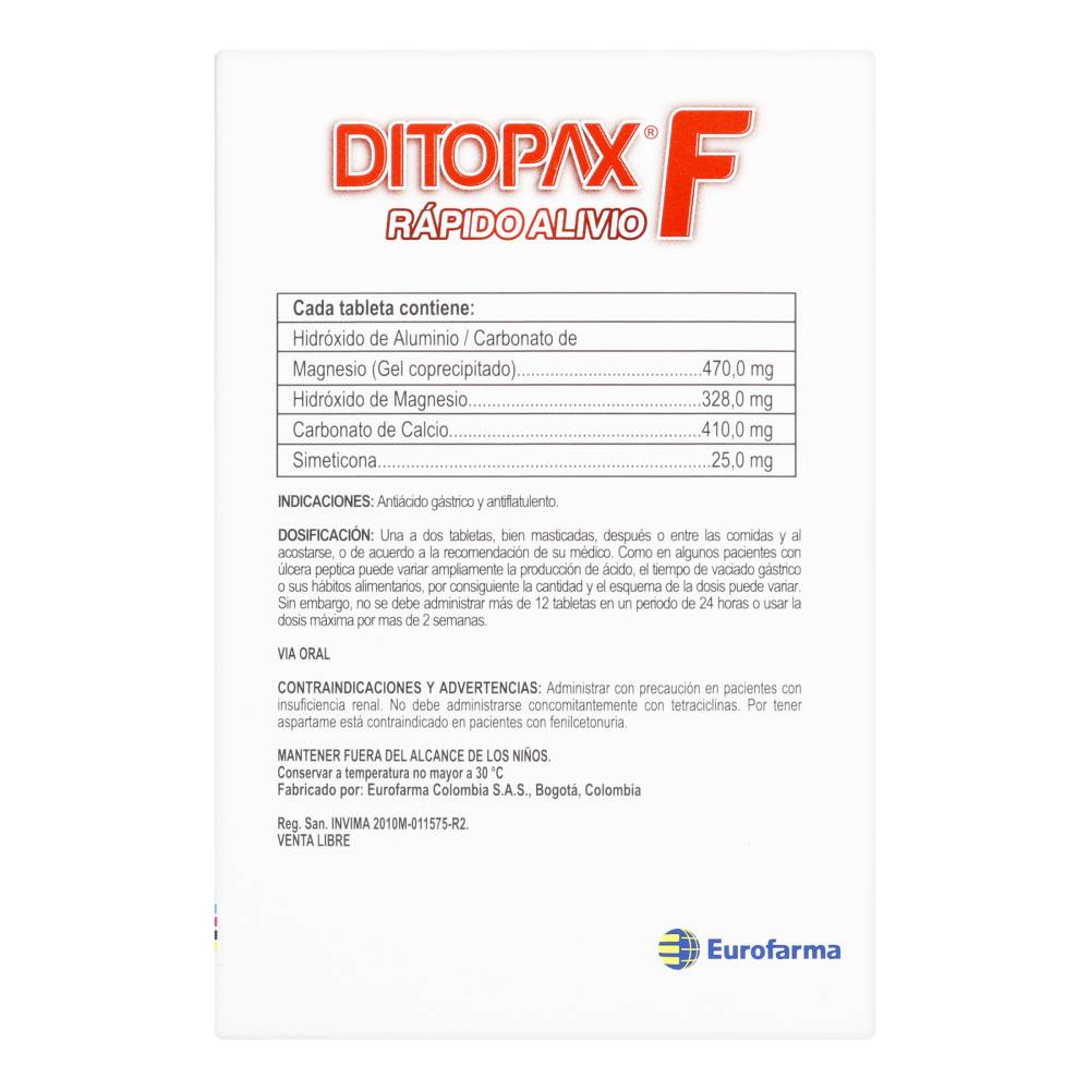 ¡Alivio efectivo y rápido para el dolor y la inflamación, ahora fácil de tomar con Ditopax Masticable! Este práctico envase contiene 25 tabletas masticables diseñadas para proporcionarte un alivio potente y conveniente, ideal para quienes tienen dificultad para tragar pastillas.