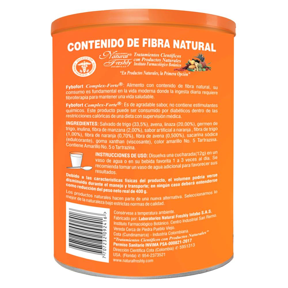 ¡Alivio potente y completo para el estreñimiento con Fybofort Compuesto Forte Psyllium! Este generoso envase de 400 gramos ofrece una fórmula reforzada de fibra natural de psyllium combinada con otros ingredientes naturales para promover una regularidad intestinal fuerte y efectiva.
