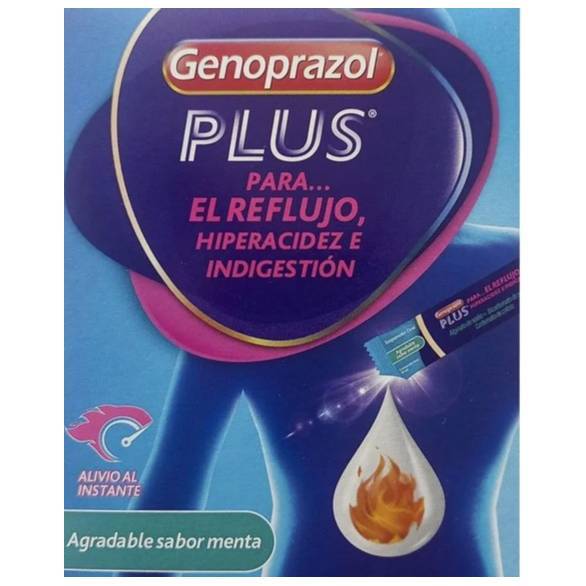 ¡Alivio máximo y prolongado para la acidez estomacal y el reflujo, ahora en prácticos sobres individuales con Genoprazol Plus ! Esta conveniente caja contiene 10 sobres de 10 ml cada uno, ofreciendo una dosis potente y fácil de llevar para un alivio rápido y duradero del ardor de estómago y el reflujo ácido, ¡ideal para tener a mano en cualquier momento y lugar!