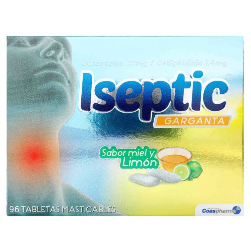 ALIVIO ECONÓMICO Y PROLONGADO PARA EL DOLOR DE GARGANTA: NUESTRO PAQUETE DE 96 TABLETAS DE ISEPTIC EN SABOR A MIEL LIMÓN ES PERFECTO PARA FAMILIAS O PARA AQUELLOS QUE BUSCAN UN ALIVIO CONFIABLE Y ECONÓMICO PARA EL DOLOR DE GARGANTA. CON CETILPIRIDINIO CLORURO Y BENZOÍNA COMO PRINCIPIOS ACTIVOS, ES IDEAL PARA MANTENER UN CONTROL CONSTANTE DE LOS SÍNTOMAS.