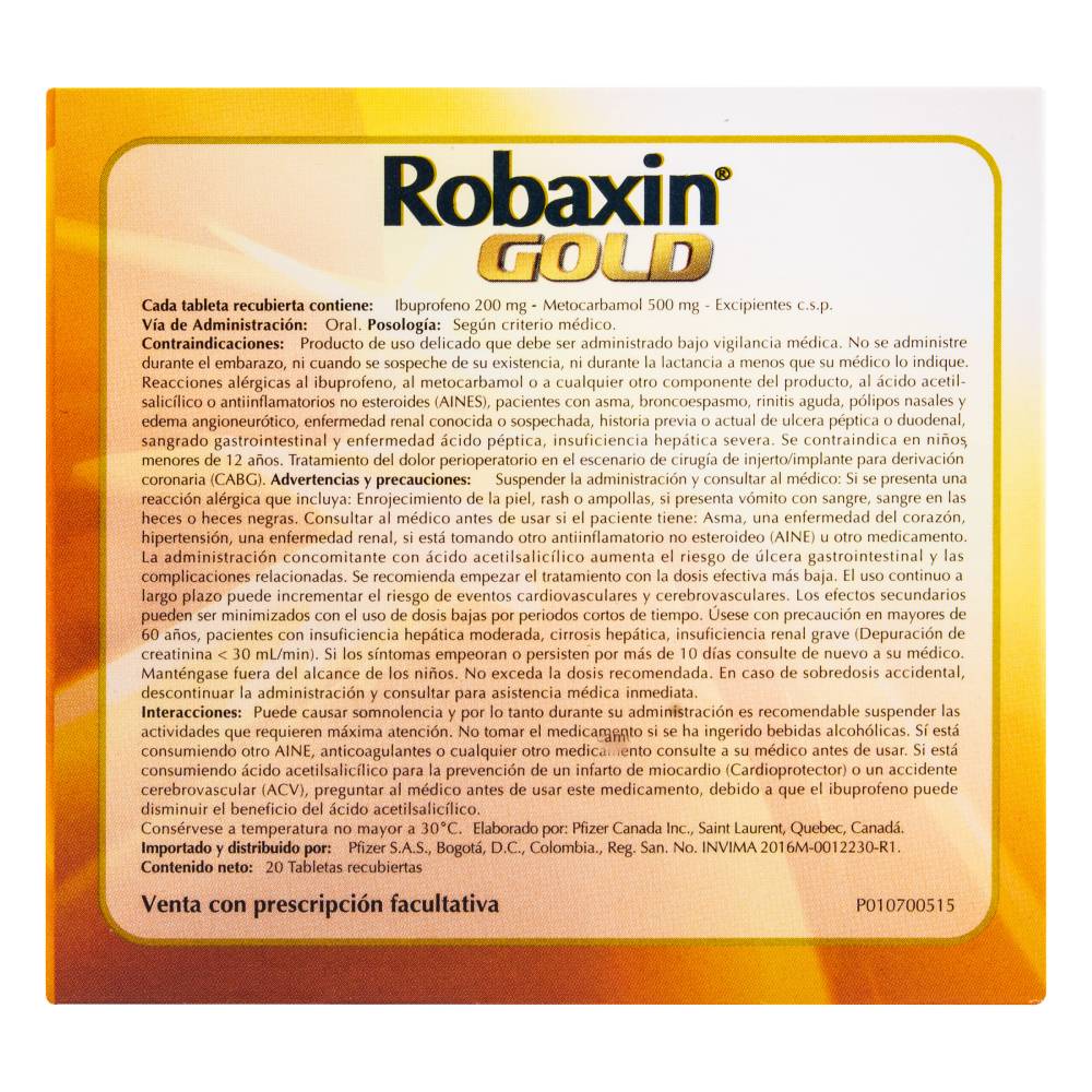 Robaxin Gold 20 Tabletas Ibuprofeno 200 mg + Metocarbamol 500 mg